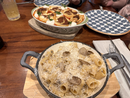 The food was so so so so good, it is a must if you are around, I would take a cap only to eat here, is worth. Inside is beatiful. The bread is really nice, we had carbonara which was from another planet, Bolognese which was really tasty and margarita pizza which was also very good. Service can be improved, I could not figure out person in charge but 1x host, 1x for drinks, 1x for food and other people bringing the meals, there is no flow.in the service. The two young guys on black shirt without uniform (I believe cleaners) were performing way better than the rest of the waitress. You could notice few of them have been working there long, because of it, lazy mode was active on them. Big thumbs for the 2 young guys with...