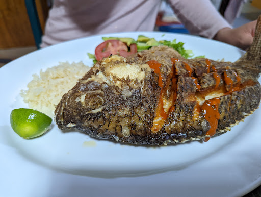El tamaño de la mojarra es increíble, muy grande y súper bien freida. El lomo está sensacional, la salsa diabla muy rica. Quizás pudiera pedir que pique un poco más pero el sabor es perfecto. Super bien guisado, solo no te fies al 100 pues aunque es lomo me tocaron como 4 espinas. Ambos platillos van acompañados de arroz y ensalada. El arroz esta esponjoso y muy rico.