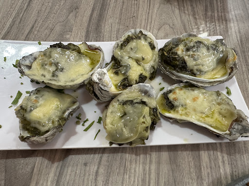 I really enjoyed the camarones al mojo de ajo despite their being slightly dry from being overcooked. The oysters Rockefeller were disappointingly underseasoned (badly needed salt and pepper), and the oysters were minuscule despite being in good sized shells. The cheese and spinach components totally took over the show and the whole thing was just a bland mess.
