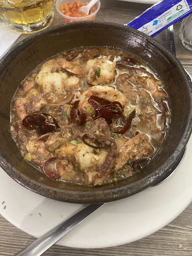 Lo que les recomiendo es el platillo que más me gustó, literalmente es exquisito, pedí el pulpo y camarones al ajillo… lo más rico de pescados y mariscos que he comido, después el taco gobernador, el balance entre la cantidad de mariscos y queso es la cantidad correcta, el filete relleno de mariscos también es muy rico aunque no excepcional, también pedí espagueti Alfredo con camarones, este quizás es el más común de todo lo que probé muy rico también pero nada fuera de lo normal, pero el pulpo con camarones al ajillo; el pulpo parecía mantequilla, y con aros de chile guajillo, pidan esto no se arrepentirán.