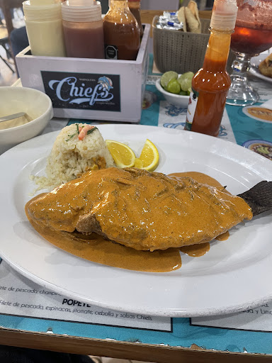 Read moreHola a todos, mi experiencia en este lugar es buena, lo recomiendo mucho, la comida esta bien preparada y buenas porciones, (solo el caldo de pescado no tiene buena porcion de pescado este no lo recomiendo) en general todos los platillos son los tradicionales pero los chefs tienen muy buen sazón, de repente en los platillos empapelados recomiendo los pidan con poca sal ya que los ha en al vapor y tiende a salarse un poco....el servicio es bueno les falta un poco más de amabilidad, el ambiente es agradable y familiar, la atención del dueño es muy calida y agradable, en fin si recomiendo que lo visiten y disfruten de un buen platillo o cocktail, solo sean muy específicos por ejemplo si no les gusta mucho la cebolla o algún acompañamiento pidan no se lo integren o viceversa si les agrada pues pidan le integren un poco más....los precios están muy bien balanceados en calidad y cantidad....asi que recomiendo mucho este lugar, Felicidades al equipo de Marisquería Chiefs y espero sigan mejorando en servicio y que sigan con esa deliciosa calidad y sabor de sus...