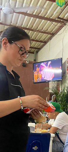 Es un lugar con un excelente sazón en todos los platillos que he probado. Cocteles, empanadas, pescadillas, hamburguesas de camarón, alambres de mariscos y pasta con mariscos, camarones empanizados, ceviches, mojarras, etc. Acompañados de cerveza, clericot, limonada, refresco o agua de sabor. Los platillos son frescos y preparados al momento, por lo que si vas en un horario que haya bastantes clientes, como a la hora de la comida, sí deberás tener un poco de paciencia, el sabor bien merece la pena y el precio es bueno, considerando que las porciones en los platillos son generosas. El lugar es limpio y el personal es amable y con buena disposición y actitud de servicio hacia el cliente. Como postre, tienen helados chalco, de esos que vienen dentro...