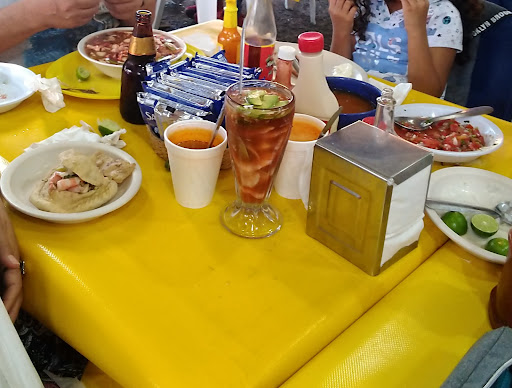 Read moreEs delicioso, los precios muy bien y las porciones también. Antes regalaban el caldo de camarón, ya cuesta 10 pesos y no lleva camarón ya. Las empanadas vienen como con dos camarones y pues si tienes que te llenarla con lo demás que pidas. Lo malo: siempre está a reventar, está lleno de abejas que rondan tú comida todo el tiempo, tardan mucho en atenderte, y hay todo el tiempo bandas pasando de un local a otro.. Habrá a quién le guste eso, pero a mi, en lo personal, me molesta mucho tener la música tan fuerte mientras como y casi encima de la mesa. Yo voy por que es rico, pero la experiencia del lugar.. Me hace ir sólo cuando de verdad tengo muchísimas ganas de comer mariscos ricos y no gastar...