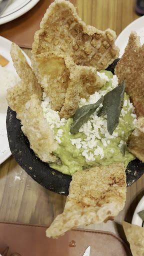 Wonderful and lively place to eat. The staff were all welcoming and there is a mariachi band that will serenade you for tips during your meal. Only problem is we don't speak Spanish and everything was in Spanish from the menu down to the table special signs. Luckily, there was one staff member who could (sort of) speak English to help guide us with our menu selections. With his help and Google translate, we got through ordering. The food came out delicious. The roasted pork belly had juicy meat and very crunchy skin. Just the way I like them. The beef and steak tacos were yummy. I liked the regular beef one. The steak one had some pieces of pure fat I had to pick out before eating. Not good for my cholesterol. The sea bass was pretty good. A little dry but no fishy taste. But the veggies that came with it were perfectly steamed. All in all, it was a...