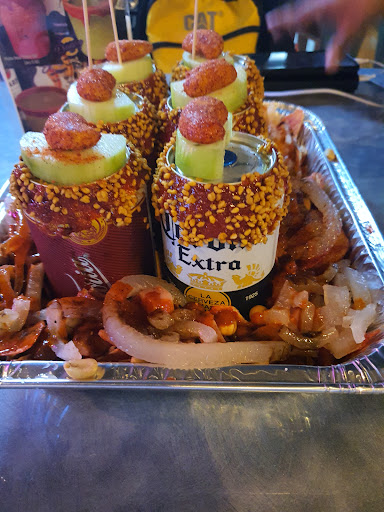 Para empezar,si vas con amigos, te recomiendo una charola especial de cerillitos (cerveza de lata con chamoy y ajonjolí) que va acompañada de papas, cuentos, cacahuetes, gomitas, pepino y salsas, deliciosa la mezcla.