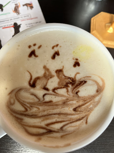 Read moreEs una cafetería y refugio de gatitos al mismo tiempo. Tienen un menú fijo y otro que cambia de acuerdo a la temporada, fui a probar el menú del terror con unos espectaculares gnocchis de calabaza, y un hot dog de salchicha rusa buenísimos. Pedimos el michi plato para compartir que son alitas, unos panecitos rellenos de Filadelfia y palitos de verduras con el aderezo de tu preferencia. De postre pedí un afogato, el café que trabajan tiene un aroma espectacular y una acidez muy buena, las tizanas también están muy ricas. Todos los alimentos los preparan al momento, pero en lo que esperas puedes tomar un juguete para interactuar con los gatitos que viven ahí o curiosear entre los muchos artículos que tienen a la venta. Tienen un protocolo y reglamento de convivencia con los gatitos, y es importante seguirlo para evitar que se estresen demasiado. Sin embargo, todos los gatos son muy amistosos y sociales, los más pequeños son más curiosos y se acercan con mucha más facilidad, solo es cuestión de paciencia para que se dejen cargar y/o acariciar. Todos los michis que viven ahí, están en adopción; por lo que si algún gatito te interesa adoptar, le preguntas a las personas que atienden el lugar para que te expliquen el protocolo. Además todos los consumos y artículos que compren se usan para poder rescatar más gatitos en situaciones difíciles y darles una mejor vida. Todas las personas son muy amables, es un ambiente completamente familiar. Nosotros fuimos por la tarde y entre semana por lo que no había mucha gente, probablemente el fin de semana sea más ajetreado. El acceso es fácil, incluso saliendo de la plaza donde se ubica se ve la catedral del zócalo de la CDMX. Mi experiencia fue muy agradable, y estoy planeado regresar con una amiga...