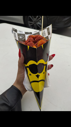 Read moreSiempre está llenisimo de gente, para formarse no se respeta la sana distancia pero de igual manera es al aire libre pues las mesitas y sillas qué tienen para comer ahí están en la mera calle, y a pesar de ello siempre están llenas, es de tener suerte encontrar un lugar disponible, usualmente la comida es para llevar. El tiempo de entrega de tu pedido varía según la cantidad de gente en espera. Yo he esperado desde 10 hasta 30 mins aprox por mi cono sencillo. En cuanto a las papas y boneless, están muy ricos pero incluso una porción sencilla resulta muy llenadora y te deja una sensación muy grasosa por lo frito. Los sabores de salsas y aderezos están muy ricos y hay grados de picante, eso ya es del gusto de cada quien. Sus aguas de sabores son ricas pero demasiado dulces y hostigantes. No recomendado para diabéticos.