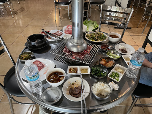 Tonight the waiter first sat us at a table with dirty seats, then we waited while the waiter came to our table - without saying another - went to another table and took their order, came back and took our order, went to the counter - came back and asked us twice what we wanted. He came back a third time (mind you, still no banchan or drinks served) and told us we had to order more than one serving in order to have coals and bbq at our table. If that is the new policy — TELL your customers before they sit around for 20 minutes wasting their time. Print your requirement on the menu or hang a sign. The waiter also had his mask hanging below his nose.