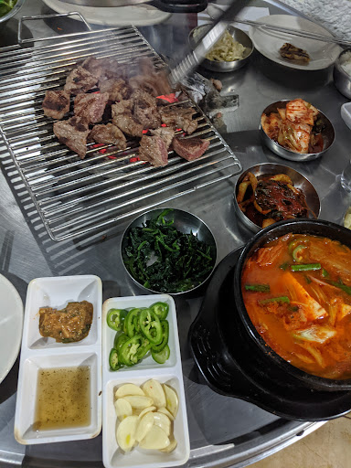 Tonight the waiter first sat us at a table with dirty seats, then we waited while the waiter came to our table - without saying another - went to another table and took their order, came back and took our order, went to the counter - came back and asked us twice what we wanted. He came back a third time (mind you, still no banchan or drinks served) and told us we had to order more than one serving in order to have coals and bbq at our table. If that is the new policy โ TELL your customers before they sit around for 20 minutes wasting their time. Print your requirement on the menu or hang a sign. The waiter also had his mask hanging below his nose.