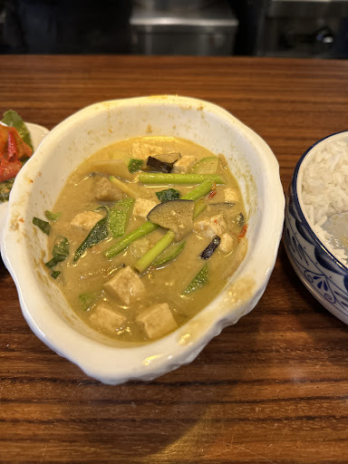 The green curry stands out as a personal favorite, perfectly balanced in flavor and spice, closely followed by the rich and aromatic Penang curry. The restaurant's intimate setting allows diners to witness the culinary magic firsthand, offering a unique and engaging dining experience. Chef Nan and her team are always ready to discuss each dish and accommodate dietary needs, showcasing their dedication to customer satisfaction. My gluten allergy was handled with exceptional care, and the adjustments made to our dishes were seamless.