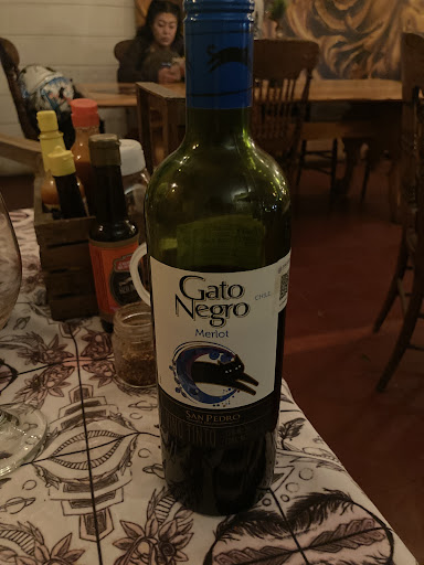 On our case we tried a big sized pizza half 'B de Amor' (Sliced eggplant, Salami, Fine Herbs and Mozzarella Cheese) and the other half 'Sublime' (Serrano Ham, Goat Cheese, Rugula and Mozzarella Cheese), it was delicious, the ingredients quite fresh with good quality, the only inconvenient was the cheese, it had good consistency but with lacking in flavour, also, we paired our pizza with a glass of red wine from Chile (Merlot - Gato Negro).
