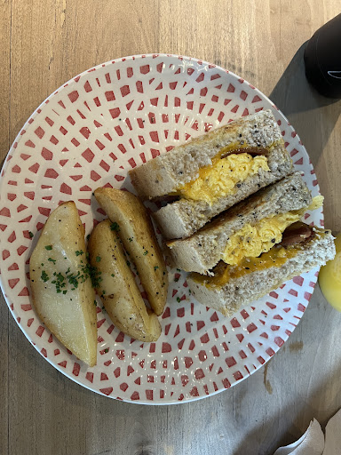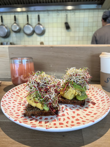 Read moreFantastic breakfast! One of the best we’ve had in Mexico. We got the breakfast sandwich and bacon and eggs. Both meals were delicious, but the hummus on the bacon and eggs platter really stood out. My only complaint is that the potato wedges were hard, but they still had a good flavor. Also, the cappuccino and chai latte. The cappuccino was amazing, but the chai latte was nothing special. We sat at the bar, and it was nice to have a view of the cooking. The man who looked to be the head chef was very precise in everything he did, and really put a lot of care into each dish. We would come here all the time if...