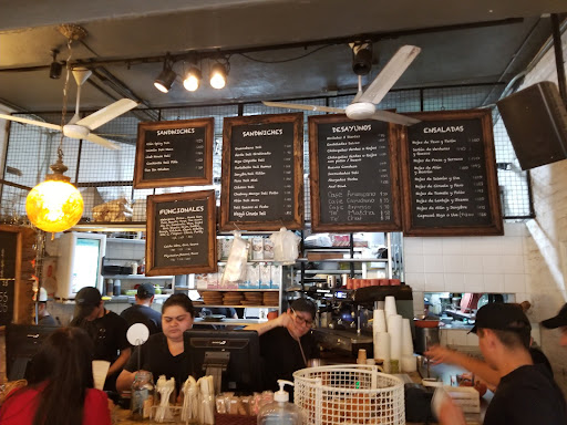 Read moreFRESH Juices, you had me just with those two words. With a full menu insert of juice options, it's going to be a difficult choice just picking one. For one, when you step into the cafe you are surrounded with fruit and vegetables and zero fruit flies. Not only can you purchase produce here, the cafe uses all of this fresh produce for your orders. After a few minutes of decision making on which juice to choose, you're already at the front of the line. We had ordered ANTIOX and HUESOS. If you are looking to sit down, the cashier gives you a number to place at your table (you can sit in any open spot). Once your juice is ready, a running delivers your juice in a glass jar; even better that it's a re-usable glass! The brightness of the juice and the flavor are out of this world. If I lived next to this place I'd be spending most of my money on their fresh juices and smoothies. Make it a point to stop here at least once when in...