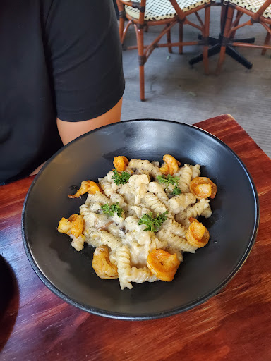 Read moreEs una verdadera lastima ya que el lugar es muy bonito y las opiniones que leímos nos convencieron de visitarlo para festejar un momento especial. Al principio tuve mis dudas de haber llegado al lugar indicado, pues en lugar del trato amable y la sonrisa que alaban en muchos comentarios, nos encontramos con un mesero algo apático. Cuando al fin desocupó el menú como abanico para secar la mesa pude ver que efectivamente estabamos en el lugar correcto. Notamos que tenia un problema de cojera, por lo que comprendimos la molestia que le provocó el que llegáramos y tuviera que pararse de la silla en la que estaba descansando. Por otro lado, nos extrañó que un jueves a las cinco y media de la tarde el lugar estuviera vacío y aún así el servicio fuera inexplicablemente lento. Parecía que acababan de abrir, pues pedimos unas papas a la francesa y el chico nos advirtió que se tardarían porque apenas pondrían la freidora. Como ya teníamos algo de hambre preferimos lo "más rapido", un guacamole que entre dos personas que estaban en la cocina tardaron más de 20 minutos en llevarnos. Entendemos el concepto de slow food, pero 20 minutos para hacer un guacamole, sin haber ningún otro pedido en el momento, no lo habíamos experimentado antes. Quiza no estaban listos para tantas personas... En fin, el guacamole y el croissant de salmón que pedí estaban bien, nada particularmente memorable, el problema fue la pasta blanca que pidió mi esposo. Los camarones tenían un olor extraño y cierto gusto de congelador. Por desgracia, en un exceso de cortesía evitando ser grosero con el chico y los cocineros (y por no soportar otra media hora de espera por una preparación igual), se los comió. Inmediatamente comenzó a tener un malestar estomacal, causándole nauseas y vomitos apenas un par de horas después. Estamos seguros que fueron los camarones, pues fue lo único que comió el día de hoy que yo no. Desde luego, enfrentamos nuestra responsabilidad al no haber regresado el plato en cuanto percibimos que estaba malo, pero sacar de la cocina camarones echados a perder o mal cocinados es un enorme problema que tarde o temprano terminará por explotarle al lugar. Aquí no aplica que lo barato sale caro, pues esta lección de vida de más de $650.00, con el 10% de propina, nos queda a deber por mucho. Por lo pronto, esperando que no se agraven las enfermizas consecuencias de haber comido ahí, nos contentaremos con no volver y dejando la crónica de nuestra fatídica experiencia, esperando pueda servirles de advertencia a aquellos que, como nosotros, solo quieran disfrutar una tarde especial...