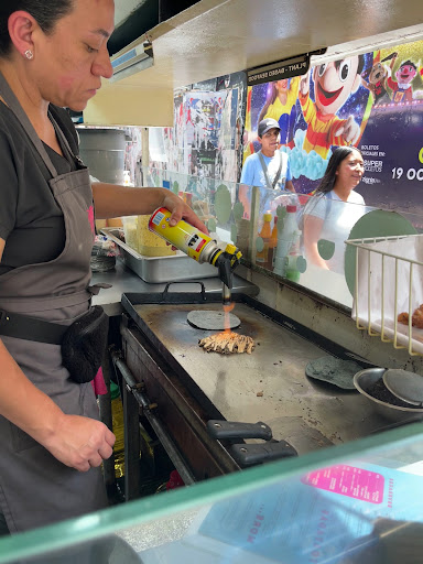 Por la ubicación, es común encontrar suficiente concurrencia de peatones en la calle, pero es posible acomodarse para comer por las sillas que tienen en la barra y otros asientos que han colocado pegados al muro contrario al puesto. Si necesitas lavarte las manos, es posible pedir permiso y ocupar la instalación donde también lavan los platos.