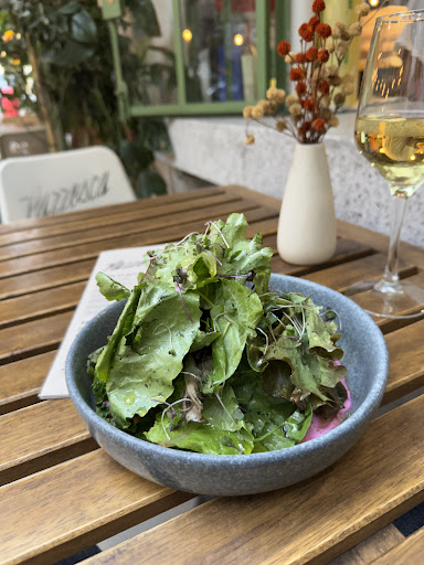 The best part of the experience was the setting. The greenery provided a nice hideaway from the street and sidewalk, making the space feel secluded and relaxing. For those looking for a table inside, there are barely any, and getting to the restroom is a bit of a trek—it requires going up a flight of stairs and weaving through a bar.