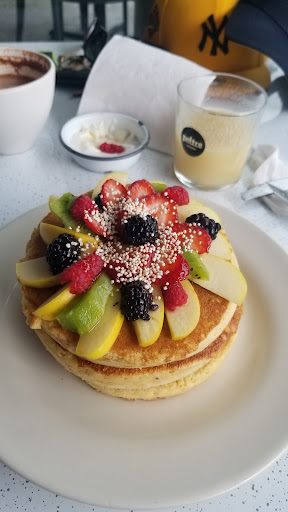 Read moreEn fines de semana deberás esperar entre 15 a 25 minutos aprox para poder tener una mesa y si es en la zona de terrazas quizás un poco más .. en cuánto al servicio aunque fueron muy amables se tardaron mucho en venir a tomar mi pedido (como 10 min).. de hecho vinieron porque yo le hice el llamado a la mesera. Luego de hacer el pedido también tardaron como 15 minutos.. nuevamente tuvimos que llamar a la mesera para preguntar por nuestros alimentos.. cuando los trajeron estaban un poco fríos (se notaba que ya tenían tiempo en la barra esperando a que los recogieran).. de sabor no estaban mal pero pues para ya tener casi 45 min esperando para comer sabían a gloria. Ordenamos un chocolate frío y jugo de guayaba y estaban bien, de alimentos ordenamos french toast, hot cakes con frutas y enfrijoladas de pollo y estaban regulares.. un poco frías y los hot cakes extremadamente gruesos. En cuanto al ambiente... Si buscas un lugar tranquilo y relajado para desayunar definitivamente este no es el lugar, entre los perros y gran cantidad de niños es sumamente ruidoso (sobre todo por aquellos perritos que ladran y ladran y ladran y a sus dueños parece no importarle).. puedes entrar a comer con tu perro al menos el área de terrazas. Cuentan con su baño propio y creo...