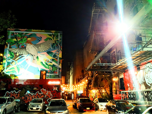 La ambientación underground en lo que fué una fabrica de harina alberga no sólo este lugar de pizzas, también tiendas de ropa, tenis, tatuajes, productos de CBD, además ha sido lugar para conciertos y es algo como una galería de grafittis en donde vas a tener muy buenas fotos.