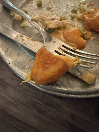 Drinks and apps were amazing -- I had a house soda which was pineapple, ginger, and soda water which was so good. Refreshing non alcoholic option. The rest of the table had beers. We order BBQ wings and cauliflower wings for our apps -- cauliflower came with BBQ sauce, ranch, and hor sauce. I loved these -- they were very lightly fried and had a great texture. Completely cooked through without being soggy.