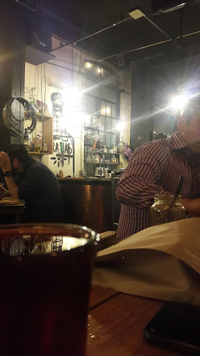 La comida: una vez compré una pizza grande afuera de un Wal-Mart, me costó $50 y era una porquería, la pizza de este lugar es lo más parecido a ella que he probado desde entonces (cuesta casi 5 veces más, claro). Pocos toppings con combinaciones mal logradas -a mi me tocó probar una de 5 quesos con micro rebanadas de pera que no le aportaban nada al escueto sabor de la pizza-, una salsa de tomate olvidable y el thin crust más abominable que he probado en mi vida; con la masa blanquecina, insípida y tan aguada que resultaba imposible comerse una rebanada sin que se le chorrearan las salsas, únicos componentes que la hacían digerible. Lo peor es que la pizza grande es aparte de insípida diminuta, terminé complementando mi comida con unos tacos de pastor de la calle -infinitamente mejor logrados que lo que preparan en este restaurancito-.
