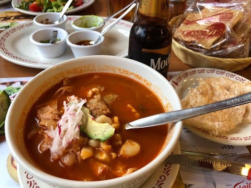 El pozole es el plato estrella del restaurante, que tiene una gran variedad de sabores, colores y carnes.