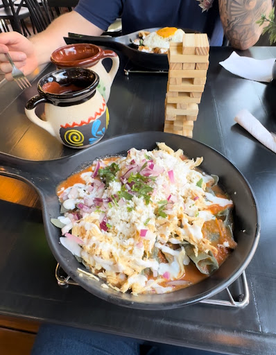 Read moreNo había tenido oportunidad de visitarlos, no tenía ninguna espectativa y resultó muy grato. Estuvimos ahí como a las 11.45 hrs, había mucha gente pero rápidamente nos ubicaron en una mesa en la terraza exterior (acera) y pronto ordenamos jugos de zanahoria y naranja y chilaquiles en tortilla de maíz azul, con salsa suiza verde, uno con cecina y el otro con pollo deshebrado y huevo frito, con crema, queso, cilantro y cebolla que estuvieron muy sabrosos y crujientes. Pedimos una orden de chilaquiles dulces que estuvieron elaborados con tortilla de harina de trigo, Nutella, fresas y un poco de azúcar glass, que también nos agradaron mucho y que acompañamos con un café de olla y una horchata de fresa. Hay una gran variedad de tortillas ( maíz amarillo, azul, nopal, etc), con diferentes opciones (pollo, cecina, arrachera, chorizo, etc) y complementos adicionales (huevo al gusto, frijoles, queso, crema, etc). Sin duda volveremos, hay grato ambiente, cálida atención y variedad para escoger. Si eres pet friend, puedes acudir con tu mascota. El único problema es estacionamiento, no hay lugar y hay que...