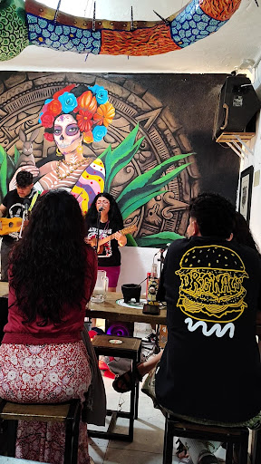 Swagger place. Mix of like a bar/party place/cool place to just chill. Went here on a whim to try some pulque and it didn't disappoint. While we were there it seemed like some people were having a family gathering so that was cool. Seems like a family-friendly but also bar-friendly place. Dude who was serving us didn't even try speaking Spanish with us before whipping out the Google Translate, which I thought was rather amusing because we ordered perfectly fine in Spanish. I got the crema de fresa flavor, and it reminded me of a pink dessert from childhood, which was a little...