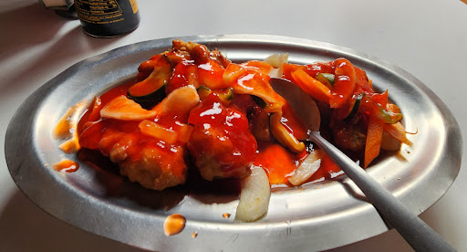 Definitely the worst Chinese food I've ever had, and overpriced too. Not sure how someone can mess up a simple sweet & sour dish, but they did. They had sweet&sour chicken wings. The food arrived within 3 minutes of me ordering, which made me suspicious. Has that dish just been sitting in the kitchen waiting for an unsuspecting tourist to order? Well, it turns out it was the worst decision. The wings were so old and dry and chewy and boney! I ate one, hoping the 2nd would be better, but it wasn't. So I asked for the check. They brought me some green tea and I asked for the check again. After 5 minutes, I had to ask for it a 3rd time. And when the check came, they had charged me for the rice!! Which is usually included in any Chinese dish. I couldn't get out of there fast enough, it was just awful. Read other reviews before you eat...