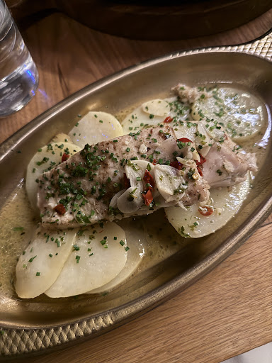 The most frustrating part was watching several waiters standing idly, seemingly with nothing to do, while we waited excessively for everything. Our main dishes took over 40 minutes to arrive, and when they finally did, the quality was shocking. We both ordered the seabass, which was incredibly dry, tasteless, and clearly not fresh. The only redeeming part of the meal were the potatoes.