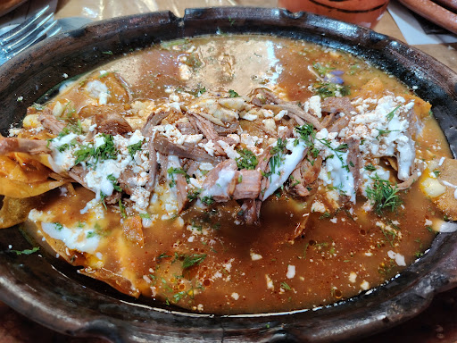 Habíamos pasado en varias ocasiones delante del lugar pero apenas tuvimos oportunidad de probarlo. Está más alejado del gran conglomerado de fondas lo cual es una ventaja pues no hay tanto bullicio. Sin embargo, tiene ciertas áreas de oportunidad a tomar en consideración si vas a sentarte a comer. La comida está rica, sin más. Quizá lo que vale la pena probar es uno de los especiales que no están en la carta: chilabirria. Nosotros tuvimos la suerte de que los platillos estuvieran bien servidos pero en dos mesas contiguas escuchamos quejas: una por carne carbonizada y otra por la preparación del pambazo. El servicio es muy lento, mucho más de lo habitual en esa zona de comida. Entonces, ve preparado y con poca hambre. Esto nos llamó la atención pues al llegar, el lugar estaba casi vacío y después, cuando se llenó, el tiempo de espera para una cuchara era muy largo. No sé si la logística de las tareas esté mal distribuida ya que si hay bastante gente trabajando ahí. El lugar es bonito pero tiene el inconveniente de que su techo de lámina acentúa demasiado el calor. Además de esto, la parrilla está al frente y mucho del humo se mete. Finalmente, solo había un ventilador funcionando. Creo que el otro estaba dañado. Recomendaría que inviertan un poco en hacerlo más acogedor y seguro tendrían más clientes fieles (que vuelvan y no que vayan de...
