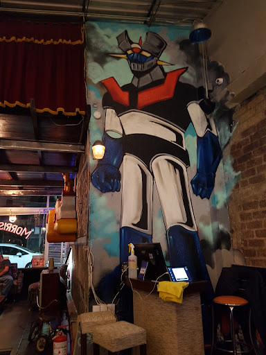 Lugar con temática sesentera, personal muy amable, se nota una correcta higiene y los precios no están tan mal. Como alimentos tienen principalmente hamburguesas (servidas con papas) con gran variedad de estilos, incluidas 2 vegetarianas y 1 vegana para los especialitos jaja, y los precios rondan los 100 pesos. Compramos tres hamburguesas, eran SexPistols, Beatles y Rocking (si no mal recuerdo los nombres), quedamos contentos con nuestras hamburguesas, en mi caso la Rocking tenía muy buenos sabores, la carne estaba bien preparada, buen queso, guacamole con buena acidez, quizá sería bueno que pusieran la opción de poner doble carne a tu hamburguesa; algo que no me gustó es que no venden cerveza, entiendo que quieren dar un ambiente familiar y evitar problemas, pero si ponen cervezas de cervecerías independientes o europeas por el costo se controlan las personas que no saben beber y adicionas una bebida que marida perfectamente con ese tipo de alimentos, en compensación de ello venden agua de jamaica, horchata y limonada bien hechas. Pedimos unas alitas, la verdad yo no suelo comprar eso, pero a uno de mis amigos las pidió con salsa "callejera" pues decía que estaba muy rica, la verdad a mí no me gustó mucho, más que nada por la salsa que me parece de esas mezclas muy malas que algunos suelen echarle a las micheladas, otra opción que tenían era una salsa de habanero con mango (creo) que me parece ha de tener mejor sabor. No cuenta con estacionamiento, pero en esa calle no hay restricción de estacionamiento, sólo sería tener suerte para encontrar lugar o buscar un...