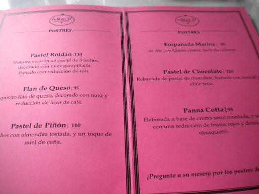 Read moreLas instalaciones son hermosas, la decoración es Mexicana con un toque minimalista que hace que todo luzca un poco más. Al llegar el mesero (Alejandro) nos informó que la temporada de chiles en nogada ya había comenzado. Mi mama decidió pedirlos y yo escogí una pechuga de pollo rellena de huitlacoche y champiñones. Para tomar pudimos una jarra de agua de maracuyá – la cual estaba muy fresca y el sabor era divino– nos recordó a un lugar tropical. Nuestros platillos llegaron y eran una obra de arte. El chile en nogada además de ir cubierto de crema de nogada, granada, nuez y perejil iba acompañado de una rosa roja – la cual es comestible según nos informó el chef Rómulo Mendoza. La pechuga de pollo rellena iba acompañada de ensalada con nueces garapiñadas y arroz blanco con verduras. Ambos platillos estaban deliciosos pero el chile en nogada nos cautivó. La crema en nogada tenía un toque especial que mi madre y yo no pudimos identificar – han de ser los ingredientes secretos. Al terminar degustamos de unos toritos de cacahuate y ron los cuales nos encantaron. Y para cerrar con broche de oro probamos el pastel Roldán el cual consiste de un pastel de 3 leches, decorado con nuez garapiñada, fresa rebanada y bañado con una reducción de ron. ¡Estaba DELICIOSO!!! Es un pastel con un twist que en verdad les va a gustar. Mi recomendación es comer en la segunda planta para poder ver la cocina (la cual es hermosa) y tener vista a la calle a través de los balcones. El chef Rómulo Mendoza fue a nuestra mesa en varias ocasiones y pudimos conversar con él acerca de sus platillos y de los viajes que ha realizado por el mundo de los cuales ha tomado inspiración y también ha impartido cursos de comida Mexicana – compartiendo de esta forma la cultura gastronómica Mexicana en otros lugares del mundo. Es una persona muy agradable y se nota la pasión que tiene por la cocina ya que la comida fue deliciosa. Nos sentimos como en familia dentro de Roldán 37 – súper recomendado y volveremos pronto. The premises are beautiful, the décor is Mexican but with a minimalist style which makes everything pop more. Upon arrival, our waiter (Alejandro) informed us that the chiles en nogada season had begun. My mom decided to order this this and I picked the huitlacoche and mushroom stuffed chicken breast. For drinks, we ordered the maracuya pitcher – it was very refreshing and the taste was divine – it reminded us of a tropical destination. Our plates arrived and they were masterpieces! The chile en nogada in addition of being covered with the nogada sauce, pomegranate, pecans and parsley was accompanied by a red rose – which was edible according to chef Rómulo Mendoza. The stuffed chicken breast was served with salad (topped with glazed pecans) and with rice with vegetables. Both dishes were delicious but the chile in nogada was our favorite. The nogada sauce had a special touch that my mom and I were not able to identify – it must be all those secret ingredients. At the end, we enjoyed some rum and peanut toritos – we loved them, something different and delicious to try. Last but not least we had the Roldán cake which is a 3 leches cake, decorated with glazed pecans, strawberry slices and drenched in a rum reduction sauce. It was AMAZING!!! It is cake but with a twist that I am sure you will like. My recommendation is to eat on the second floor, this way you have a chance to see the kitchen (which is beautiful) and be able to enjoy the street view through one of the balconies. Chef Rómulo Mendoza went to our table several times and we had the chance to speak with him about his dishes and the trips he has made all around the world in which he has acquired inspiration and in addition, he has taught master classes on different Mexican dishes – in this way he shares Mexican gastronomic culture with the world. He is a very friendly person and one can see the passion he has for cooking because his food was delicious. We felt like family in Roldán 37 – super recommended, we will...