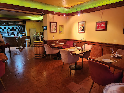 It's a very lovely bistro on a pedestrian street, do it's nice to sit outside, on their terrace. They have ample space inside and outside. The service was great! The gentleman who took care of us was very attentive and was able to answer all our questions about the menu. We got a couple of different drinks and the soup of the day, which was Cream of Red Cabbage. It was delicious and smooth, perfectly blended with a couple of croutons sitting on top. For the main course we ordered a Mushroom Risotto and a Beef Bourguignon. Both of these dishes were good, but a bit oversalted. The Risotto was perfectly al dente, and even though there were a lot of mushrooms in it, for some reason the flavor didn't get through. It was served in a lovely manner with a metal barrel holding the risotto in the middle of the plate with grated Parmesan cheese around it, as the plate was placed on the table, the barrel was lifted and risotto sprawled on the plate. The beef was cooked really well, it was soft and succulent, easily falling off the fork and the sauce was not too overwhelming and the au gratin potatoes were...