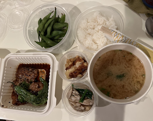 Twice ordered to go since our ABB was around the corner. Had edamame starter— exactly how I like it with a little crunch still. Seasoned perfectly. They have a spicy version which I’ll try someday. Twice ordered tuna teriyaki which was out of this world delicious! Lightly grilled, homemade piquant teriyaki sauce with subtlety between salty and sweet. Two charred shishito peppers were a welcome surprise. Two side dishes were wonderfully cooked and nice contrast in flavors. Cooked veggies and white rice completed the meal. Couldn’t have found a more perfect fully rounded meal. So much so that I went back and had it for lunch the next day as part of a progressive meal shared with my compañero. Please visit and you’ll be well taken care of by the delightful and friendly staff. Their menu is substantial and with fresh fish sourced from Baja California (tuna) and Japan. Adorable parklet...