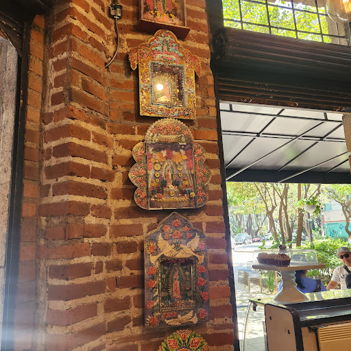 Read moreTienen sus días buenos y sus días malos. Por ejemplo, un día probamos un chocolatin delicioso y otro día estaba durísimo y viejo. Los brownies están ok. A mí me encantan los postres pero a pesar de que les he dado varias oportunidades a los de aquí, nada más no me encantan. Otro día también probé una lasaña y no me gustó. Tienen un pan de muerto cubierto de chocolate que sí están rico y está enorme. El servicio es más o menos, a veces no te atienden con tanto gusto y pueden ser algo tardados. Un día me animé a sentarme a tomar un té con una amiga en la parte de adentro arriba y no me gustó nada. Tienes que subir unas escaleras medio chicas y peligrosas, hace mucho calor, está obscuro, nos tenía medio olvidadas el mesero y la música no me gustó nada (pop muy cursi en español). Las mesas de afuera están mucho mejor. En resumen una opción para cuando estás cerca. Siempre hay gente así que el café debe ser bueno, pero yo...