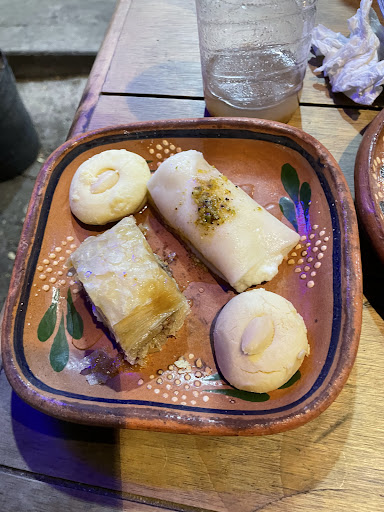 Read moreSimplemente no tengo palabras para describir mi experiencia en este lugar. Alimentos. Son de primera, son de una calidad y de un sabor incomparable, es comida árabe tradicional, hecha al momento con un sazón excelente. No lo pude haber disfrutado más. 10/10 Bebidas. Muy frescas y frutales, excelentes también. Postres. No se vayan sin probarlos, hay baklava, dedos de novia, entre otros postres tradicionales, exquisitos Costos. Bastante bien considerando la relación con la calidad que tienen y que no es comida que consumas diariamente. Baños. Unisex y pequeño, es el mismo que ocupa el personal, pero estaba limpio. Estacionamiento. En la misma calle o calles aledañas, no hay estacionamiento ni valet parking. Zona sin parquímetros. Formas de pago. Tarjeta y efectivo.