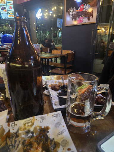 Es realmente un buen lugar , no es caro pero tampoco es el mas barato. Los lunes hay 2x1 en alitas , los jueves la cerveza esta al 3x2 , los domingos niños comen gratis. Los precios son realmente competitivos 500 gramos de alitas en 350 pesos y cerveza nacional en 60 pesos , hay opción de pedir cahuama a 120 pesos. Lo cual lo vuelve un excelente lugar para pasarla bien, yo iría con mis amigos saliendo de trabajar. El servicio es amable y atento. La comida en mi caso fue muy rápida. El ruido es normal , diría que mas bajo que cualquier sportbar, asi que estrellita para el lugar. En cuanto al tema de las alitas , la salsa no fue mi favorita , pero eso depende de los gustos de cada quien. Al pasar 5 minutos la salsa se seca y te queda el puro pollo de las alitas , es lo peculiar que noté , lo digo en caso de que a alguien le guste sumergir sus alitas en un caldo de salsa búfalo, este no va a ser el lugar, sin embargo el sabor es bueno. Me gustó mucho la salsa de mango habanero debido a que la salsa no es dulce empalagosa, esta muy bien balanceado entre picor y sabor, asi que es un muy buen punto para el lugar.