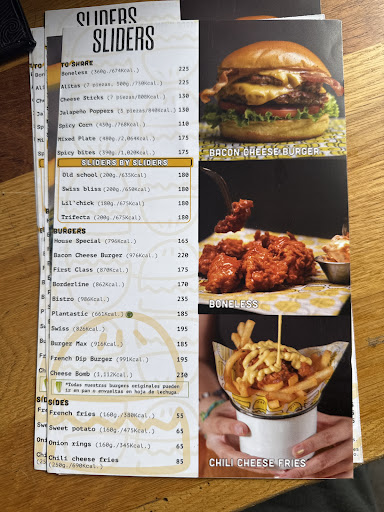 El pan, el queso y la carne Las hamburguesas han sido parte de nuestra dieta durante mucho tiempo. Desde que somos pequeños, la mayoría añoramos este delicioso platillo al menos dos veces al mes. Existen las caseras, las gourmet, las vegetarianas y a las que yo personalmente llamo, "Noburguesas". Las Noburguesas son aquellas que se venden como hamburguesas pero que realmente son una combinacion de químicos, grasa, azúcar y una gran cantidad de glutamato monosodico para aumentar los falsos sabores. Aun así, Sliders Felix Cuevas rompe con la media y nos presenta una nueva categoría de hamburguesas a las que yo llamaré, de ahora en adelante como Casera-Gourmet, ya que es exactamente lo que reflejan estas obras de arte. El concepto único de armar tu hamburguesa con los ingredientes que quieras, sin criticas y sin limitaciones, hacen de tu experiencia culinaria algo inolvidable. La frescura y calidad de cada uno de los ingredientes, sin importar el que elijas, va mas allá de lo esperado. Desde el pan artesanal hecho a mano en cada una de sus sucursales, pasando por el queso de la mas alta calidad con mínimo 6 años de añejamiento y terminando por los cortes de carne los cuales desprenden una cantidad de jugo, que te hará babear inevitablemente como el mas marmoleado corte.