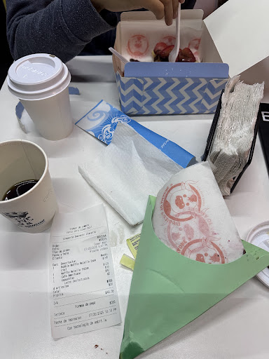Rescatable... Helado de chocolate 10/10 Malteada de m&ms 10/10 Crepa de Nutella con nuez excelente Crepa de Nutella con queso muy rica( el queso venís en cubos) Crepa de Nutella con fresa... No pude comerla. Pedí una crepa de Nutella con arándano debido a una alergia a la fresa y sin consultarme me hicieron una crepa de Nutella con fresa en lugar de la que pedí.