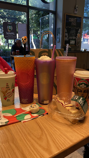 Read moreSi pudiera, le daría 10 estrellas. Simplemente es la mejor sucursal a la que he asistido, de momento es mi favorita. Quiero felicitar a los baristas Octavio e Iván, son demasiado amables y atentos. El día 15 de noviembre que comenzó el buen fin, visité la sucursal en busca de 3 vasos en específico, no obstante, solamente vi uno en la vitrina, por lo tanto, no iba a preguntar si tenían más, así que le dije a mi mamá que me estaba acompañando “sólo tienen uno de los que quiero, los demás no están” y en ese momento Octavio escuchó y me dijo “Hola, ¿qué vasos estas buscando? Lo que pasa es que tenemos otros guardados, tal vez sí están los que buscas”, por lo que procedí a mostrarle los que solicitaba y en cosa de segundos abrió su vitrina y me dio los 3 vasos que quería. Estoy encantada con la amabilidad de ambos chicos, actualmente es muy raro recibir esa atención y calidad de servicio, simplemente estoy fascinada, los admiro, desde temprano los chicos ya están despiertos y atentos ante cualquier situación para poder apoyar a los clientes. La sucursal es pequeña pero permanece demasiado limpia, en general, es muy buena la atención que brindan, recomiendo ampliamente...