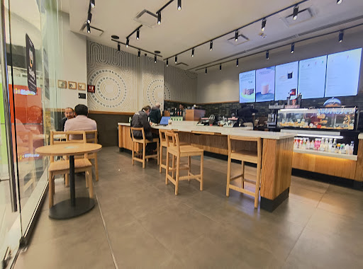 Es un Starbucks muy pequeño y acogedor. Tiene pocas horas de rush al día comparado con otros Starbucks ubicados en centros comerciales como este (Portal Churubusco), por esta misma razón, si lo que buscas es rapidez, aquí no es, la verdad se abruman un poco. Pero si lo que buscas es buena atención, aquí sí es. Los partners son muy amables y atentos. Adicionalmente encuentras muchos modelos de vasos y termos de temporadas pasadas que se han agotado en otras sucursales. El ambiente es tranquilo pero no hay sillones, sólo sillas duras de madera que invitan a retirarse pronto. Si deseas tu descuento de vaso, debes recordarles porque no lo aplican muchas veces por iniciativa propia. La verdad es una sucursal con poca afluencia, merchandise variado, y atención personalizada ampliamente recomendada. No tiene sanitarios propios. También cuenta con una pequeña isla en frente de la sucursal sobre el pasillo principal del centro comercial con mesas y sillas extras para los...