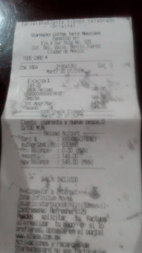 El ambiente de Starbucks Torre Mexicana está diseñado para ofrecer comodidad y funcionalidad. Aunque algunos clientes han mencionado que el espacio puede ser pequeño y, en ocasiones, ruidoso, muchos otros destacan que es un lugar adecuado para diversas actividades. Por ejemplo, un visitante comentó que es un "buen lugar para actividades diversas", mientras que otro señaló que es "chido para sentarse un rato a tomar café y descansar un tiempo". Estas opiniones sugieren que, a pesar de ciertas limitaciones de espacio, el establecimiento se adapta a las necesidades de quienes buscan un lugar para trabajar, estudiar o simplemente relajarse.