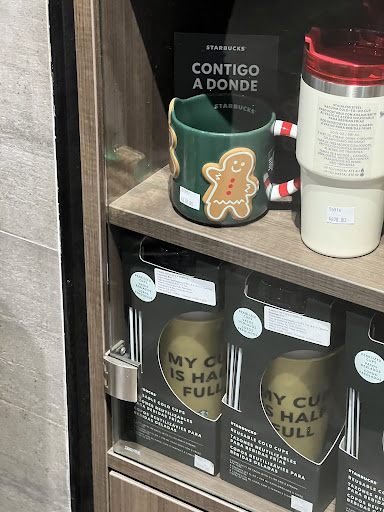 Posteriormente pedí dos bebidas “COLD BREW VAINILLA Y HEL RED VELVET” (los cuales se los recomiendo ya que el sabor es agradable de ambos) en mis respectivos termos de STARBUCKS (que también se los recomiendo para todos aquellos que son fan de esta marca) y me dispuse a disfrutar con mi acompañante mis alimentos y bebidas, cuando termine después de una hora le pedí a la cajera si me enguajaba mi termo y me tiraba los hielos que quedaron en mi termo (amablemente la cajera tomo mi termo y tiro los hielos y medio enjuago el termo ya que en la circunferencia de mi termo quedo crema batida de mi Bebida) .