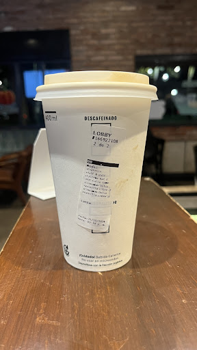 Read moreEl personal es muy amable, pero se tardan horas para darte tu bebida, además de que te saltan ya que se les empiezan a juntar los vasos con las diferentes bebidas y solo agarran los vasos por agarrarlos sin seguir el orden en el que iban. Solo se fijan o les importa el servicio de car pick yo. También tienes que estar al pendiente ya que te ofrecen muchas cosas adicionales a tu bebida ( crema batida, chispas, jarabe, etc) las cuales al ser adicionales obviamente te las cobran pero tú piensas que ya vienen incluidas en lo que pediste, y al final te sale más caro el café o tu frappé o lo que sea que pediste. Por último los baños tienen papel, agua y jabón pero quiero suponer que por la demanda de gente , siempre están a reventar los cestos de basura que incluso ya el papel está en el piso.En términos generales es un lugar con un ambiente tranquilo y agradable solo que si tienes que tener paciencia para que te...