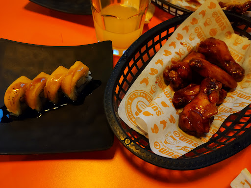 Read moreAnoche fue primera y última vez que voy con mi novia,(Sucursal Condesa) hubo tantas cosas horribles que no se sabe literal ni por donde empezar : Llegamos y no habia cupo, no nos molestó para nada registrarnos y esperar (15 min) pero al sentarnos pasaron 18 minutos extras sin que ningún mesero nos tomara la orden, lo cual ahí supone un problema, tener q esperar más dentro del restaurante que afuera,y ésto fue solo el comienzo: De todos los sushi que pedí y enumero cuales fueron (California especial, japan roll y hamochito) NINGUNO, repito NINGUNO, traía relleno d pescado o marisco según la carta, solo traian queso crema y pepino, entiendo q para un paladar no acostumbrado al sushi pueda pasar, pero tomar el pelo d esa forma es bastante bajo. Pedí una hamburguesa y que creen? Se les acabó el pan según el mesero. Las alitas fueron lo único rescatable, pero nos avisaron que "ya iba a cerrar el buffet" le dije a la mesera oye pero vamos llegando, me dijo: No les avisó la hostess al entrar? Le dijimos que no... Asi que nos permitió pedir más de 2 ordenes a la vez. Yo ya no sabía que pedir, hamburguesas sin pan, ó sushi sin mariscos y aparte su staff apresurádonos. Fui al baño y al regresar ya le habian dado la cuenta a mi novia, pagamos y al dejar mi propina TUVO EL CINISMO la mesera de regresar molesta a decirme " chicos pueden dejar propina del 10%?" Yo no lo podía creer, y en base a toda esta pesadilla hize lo mismo que hubiera hecho el que lee esto, obviamente le dije que no nos gustó el servicio y se fué aún mas molesta. De verdad no entiendo que afán de tener un concepto novedoso arruinado por meseros super jetones, comida que no sigue ni su propio menú y propinas casi obligadas. Para nosotros fue un lugar que está de moda pero que NO regresaremos, y por supuesto NO...