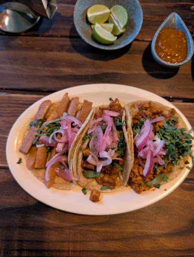 Read moreHad high expectations on this restaurant given all the positive reviews, but I was a bit disappointed. Had three different kinds of tacos (pastor, chorizo and salchica). They where OK, but a bit bland. Didn't have that much taste. I've had very good vegan tacos in several other places in Roma Norte, but this one fell short sadly. Might come back to try some other dishes. The piña aqua Fresca was refreshing. Price...