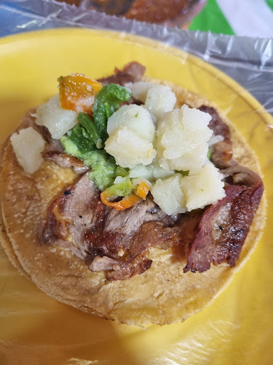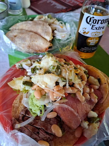 Read moreEn verdad que estos tacos si que te sacaran de apuros, abierto a cualquier hora y cuenta con facilidad de acceso, de noche te los recomiendo más aún son de esos clásicos que te bajan la peda, sus salsas super picantes, pero de muy buen sabor, encontrarás diversos costos y son en verdad accesibles, yo pagué 500 pesitos por una mega cena además rayate con complementos en sus barras de guarniciones donde hay salsas, frijoles, papas cebollitas, entre otras cosas, El servicio más menos, son amables pero muy olvidadisos, te traen cosas que no pides y hay que estarles llamado para que vayan ojo no es un favor plis, de ahí en fuera bien, como dije antes tienen cosas buenas, como la variedad de tacos y están abiertos a toda hora importante este dato...