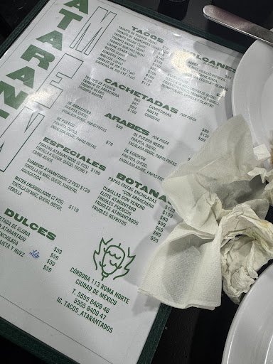 Read moreAs the name suggests, the service was full of “atarantados.” We had three waiters: the first one wrote everything down, made recommendations, and tried to be funny (making your customers laugh doesn’t guarantee good reviews or satisfaction). The second waiter entered the order into the iPad, missed half of it, and then claimed nothing was wrong. Poor attention to detail and a lack of ownership. The final waiter charged us for extra salsa, arguing that people abuse it. To make matters worse, they served warm beer and spilled drinks over one of my guests. They half-spilled mine but only replaced one. Good service would have meant two free shots at the very least.