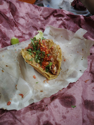 Read moreSi vas en carro y por alguna razón no te quieres bajar te acercan tus alimentos, verdura, salsa, limones, servilletas. Son muy atentos y el sabor no decepciona, las cebollitas se cobran a parte pero valen por completo la pena, el típico taco callejero con buen sabor y que a la fecha no me ha causado problemas digestivos. Son muy grasosos así que si no te gusta tanto la grasa, deberás pedir que por lo menos las tortillas no las bañen en la grasa. Sin duda alguna lo r comiendo, tienen opción de envío...