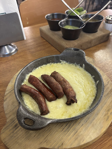 Read moreAl pedir nuestros platillos en tres ocasiones nos comentaron que ya se habían acabado, de hecho, la razón por la que fuimos a esa sucursal fue por la pizza y tampoco había. No pasaban de las 05:30pm (una hora bastante razonable para que ya tuvieran un menú tan pobre), terminamos pidiendo alternativas. Las entradas llegaron a tiempo, pero los platillos fuertes se tardaron 40 minutos, nos mandaron un queso fundido supongo que para compensar la tardanza, porque no lo mencionaron. El tema es que cuando llegaron los platillos, no eran para nada lo que esperábamos, la carne con pellejos y nada cocida (cabe resaltar que nunca me pidieron el término), el salmón estaba muy pequeño y el sabor nada destacable. Conclusión, no vale la pena ir a esa sucursal, prefiero ir a otras sucursales (que incluso me quedan más lejos) pero en donde el sabor, la calidad y el servicio...